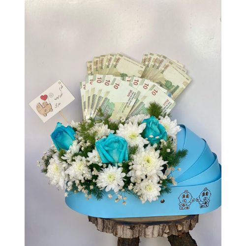 - تزئینات دیگر: همچنین در نظر داشته باشید که میتوانید با استفاده از تزئینات دیگر مانند چوب، ریبون، پاکتهای زیبا و سایر عناصر تزئینی،بادکنک،عروسک و… باکس گل زایمانتان را زیباتر و شخصیتر کنید.
