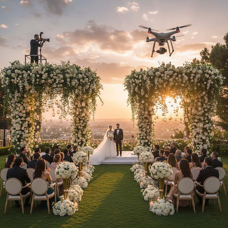 تیم حرفهای عکاسی و فیلمبرداری تشریفات افسریه با تجهیزات مدرن، تمامی لحظات مراسم از ورود مهمانان تا مراسم اصلی و پذیرایی را ثبت میکنند. زاویههای مناسب و نورپردازی حرفهای کیفیت تصاویر و فیلمها را افزایش میدهد و خاطرات مراسم را برای همیشه زنده نگه میدارد. برخی خدمات ویژه شامل استفاده از پهپاد و دوربینهای هوایی برای ثبت نماهای خاص مراسم نیز ارائه میشود.