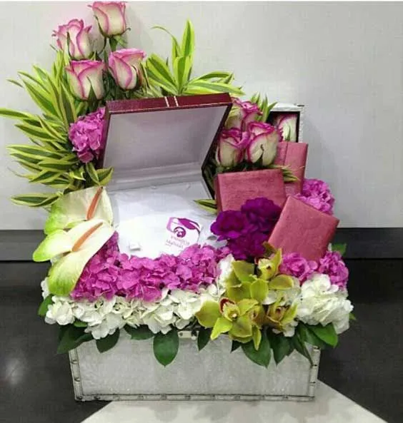 گل آرایی هدایای شب یلدا برای عروس میتواند به عنوان یک هدیه خاص و زیبا باشد. در زیر چند نمونه از هدایا و گل آرایی شب یلدا عروس به عنوان هدیه به عروس آورده شده است: